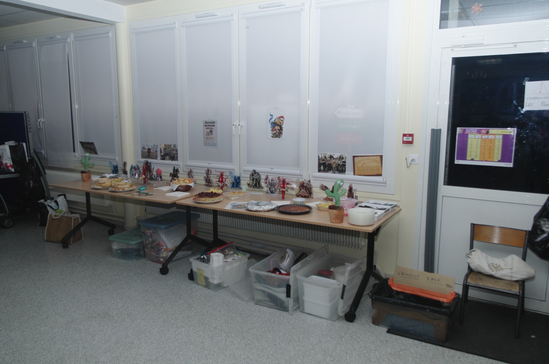 Décoration de la salle et installation du buffet.