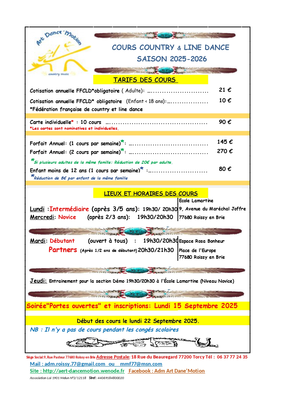 Lieux, Horaires et Tarifs des cours