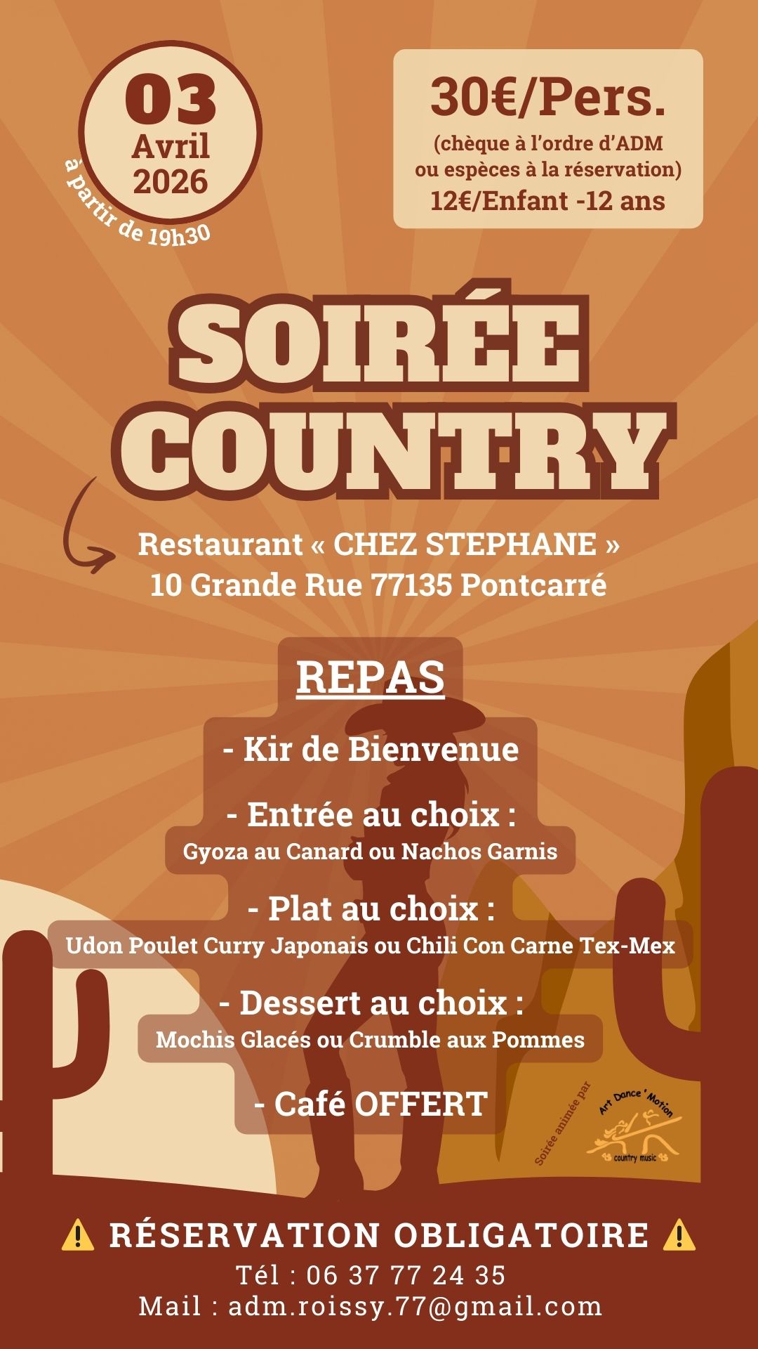 Le 03/04/2026 une soirée sera organisée par ADM au Restaurant "Chez Stéphane" à Pontcarré.